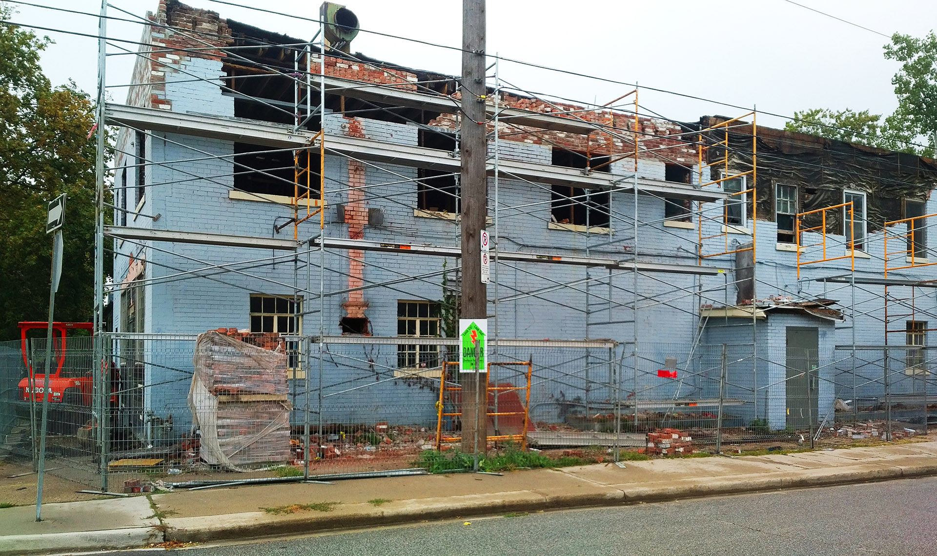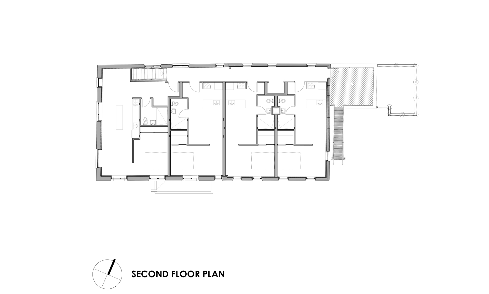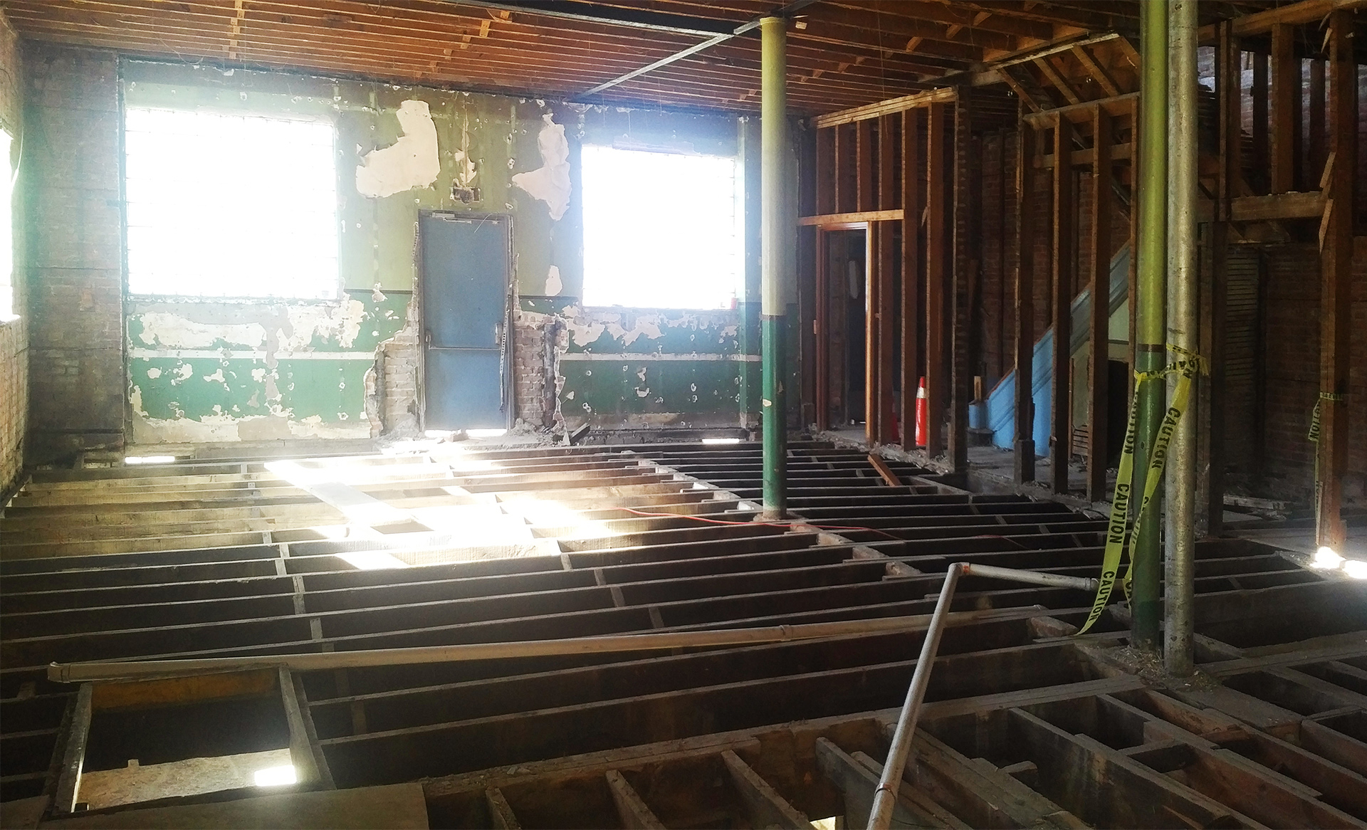 The project began with archival documentation in line with HABS documentation standards, alongside a comprehensive condition assessment to better understand the building’s layered history. Original cast and wrought iron framing suggested a construction date prior to the 20th century, while façade modifications—featuring 1930s-era clinker block behind plaster—pointed to significant mid-century interventions. Years of roof neglect and ad hoc renovations had caused extensive damage to the second-floor framing and roof structure.